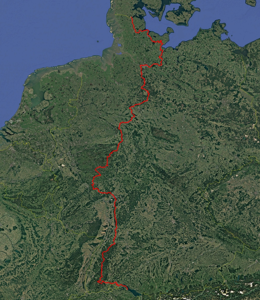 Das obige Video zeigt in nicht einmal zweieinhalb Minuten den Verlauf des E1 durch Deutschland in ganz groben Zügen. Ich habe einen kleinen Kommentar dazu gesprochen.