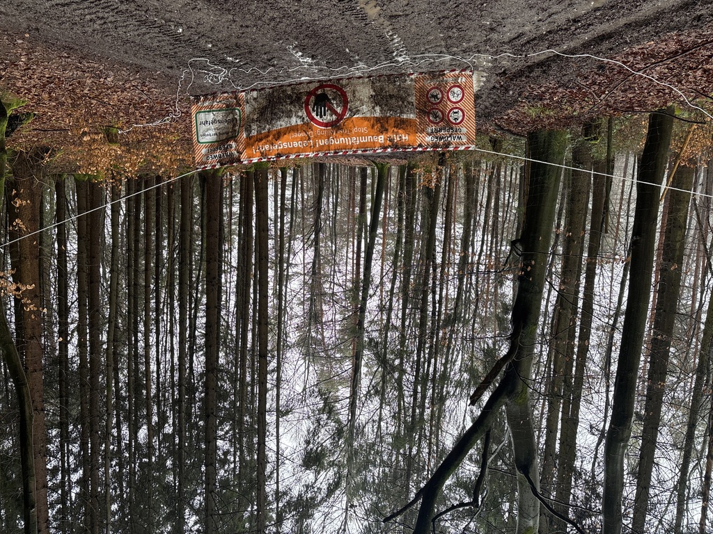 Klar, niemand sollte rumlaufen, wo mit schweren Maschinen gearbeitet wird oder womöglich Bäume gefällt werden. Aber irgendwie habe ich den Eindruck, diese Absperrungen werden irgendwann mal aufgebaut und bleiben dann ewig lange dort, auch wenn tage- oder wochenlang nichts mehr passiert. Besonders ärgerlich: Die eine Absperrung war mitten im Hang auf halber Strecke und von dort ging’s nicht mehr weiter. Denn der abzweigende Weg endete im Unterholz.