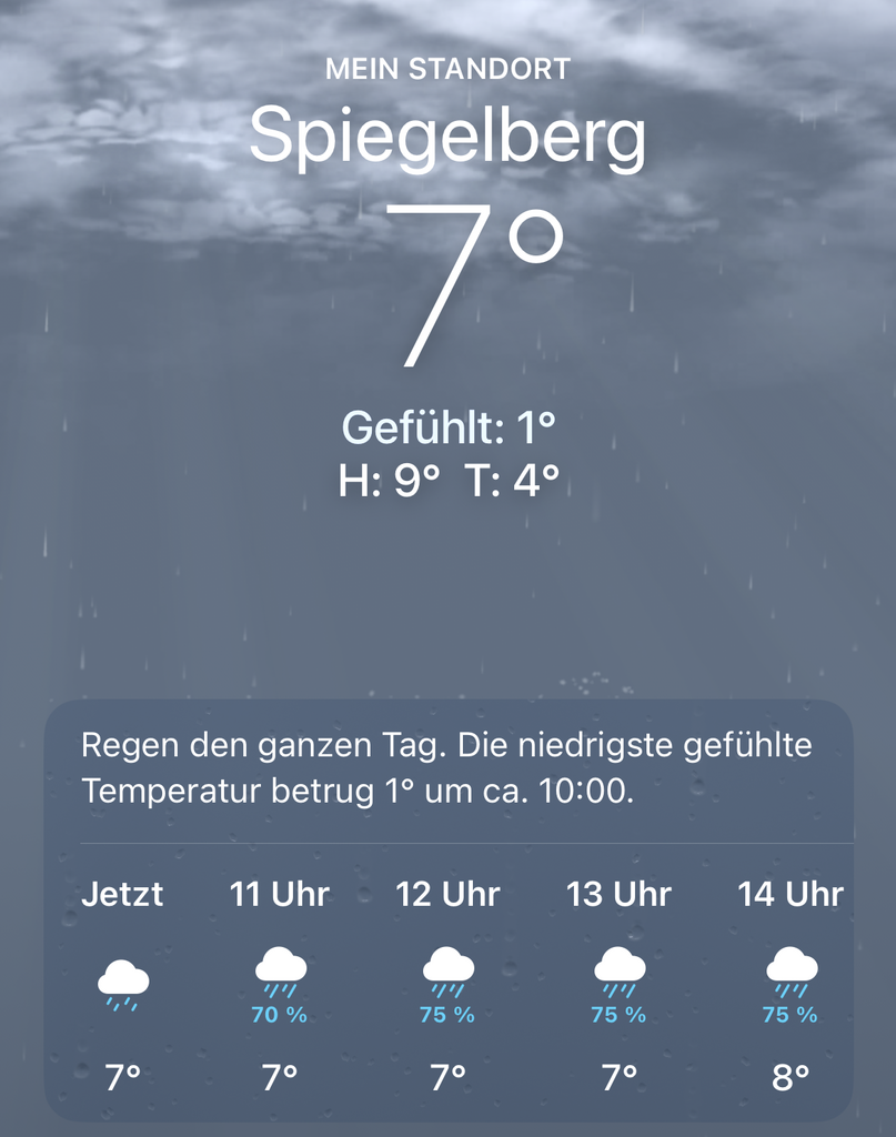 Alles nicht so erfreulich. Vor allem, weil das Wetter genau so war, die das Handy es prophezeit hatte: Dauerregen. Was per se jetzt nicht so schlimm ist, schließlich ist das Wetter beim Wandern nur eine lahme Ausrede. Was mir das heute wirklich verleidet hat, war außer den vielen Sperrungen, Um- und Irrwegen der knöcheltiefe Schlamm.